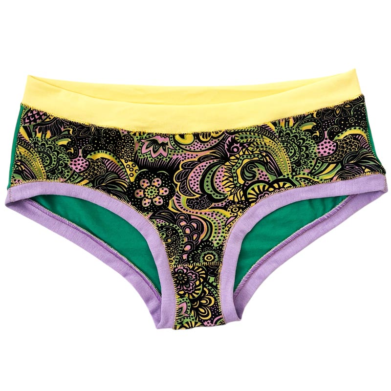Cette culotte aux assemblages de matières et couleurs (40% coton, 30% élasthane et 30% viscose) ne présente pas d’élastique, aussi bien au niveau de la taille qu’au niveau des cuisses. Agréable au toucher et confortable à porter.