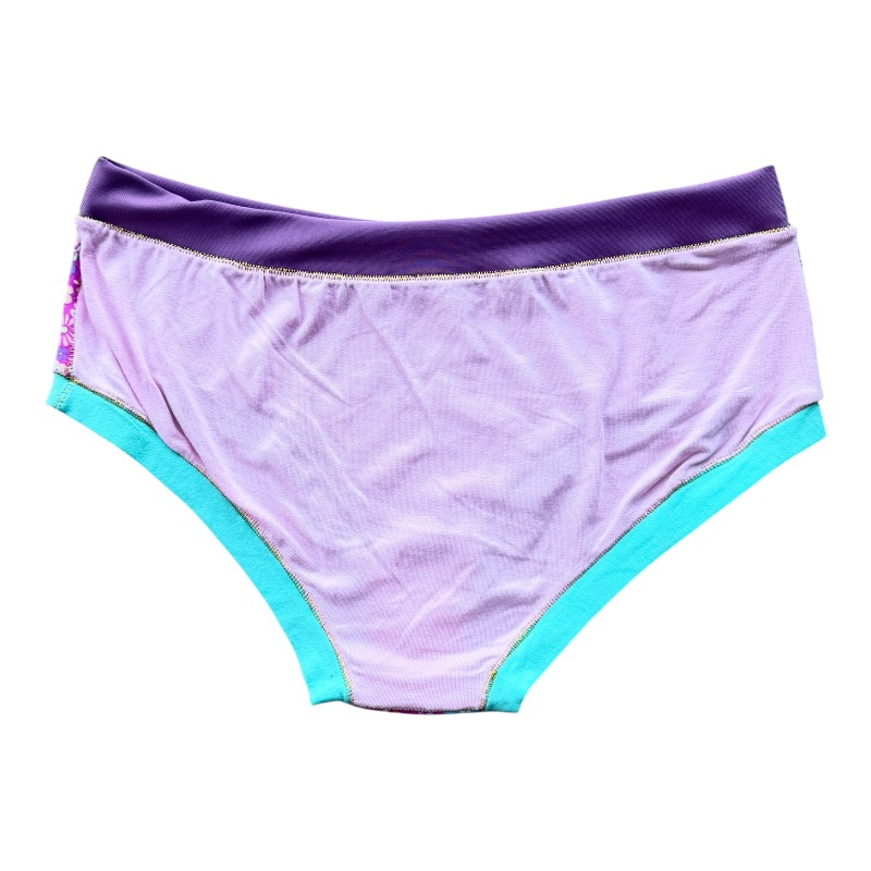 Cette culotte aux assemblages de matières et couleurs (40% coton, 30% élasthane et 30% viscose) ne présente pas d’élastique, aussi bien au niveau de la taille qu’au niveau des cuisses. Agréable au toucher et confortable à porter.