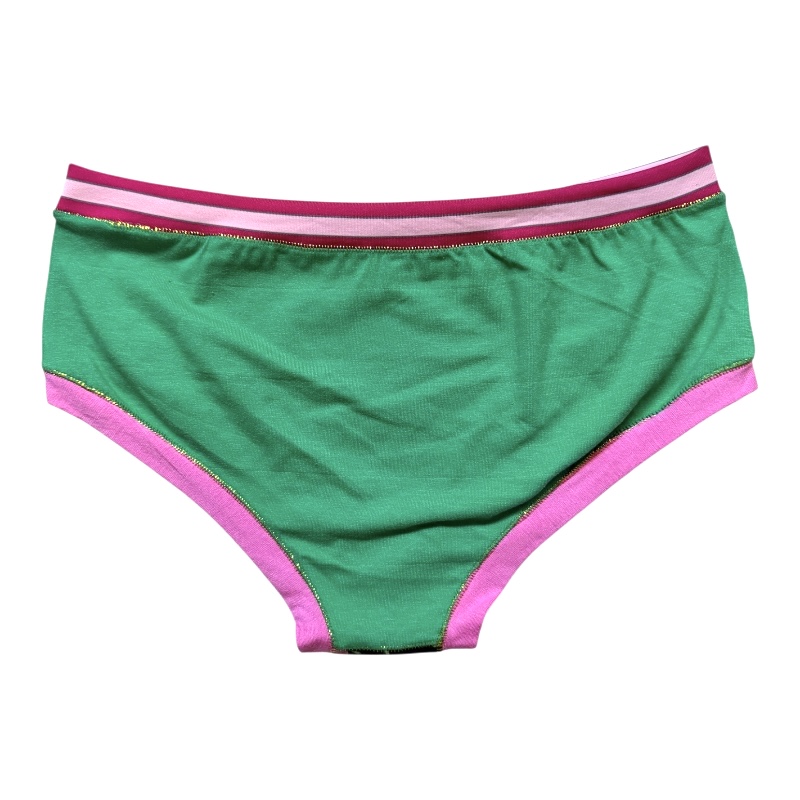 Cette culotte aux assemblages de matières et couleurs (40% coton, 30% élasthane et 30% viscose) ne présente pas d’élastique, aussi bien au niveau de la taille qu’au niveau des cuisses. Agréable au toucher et confortable à porter.