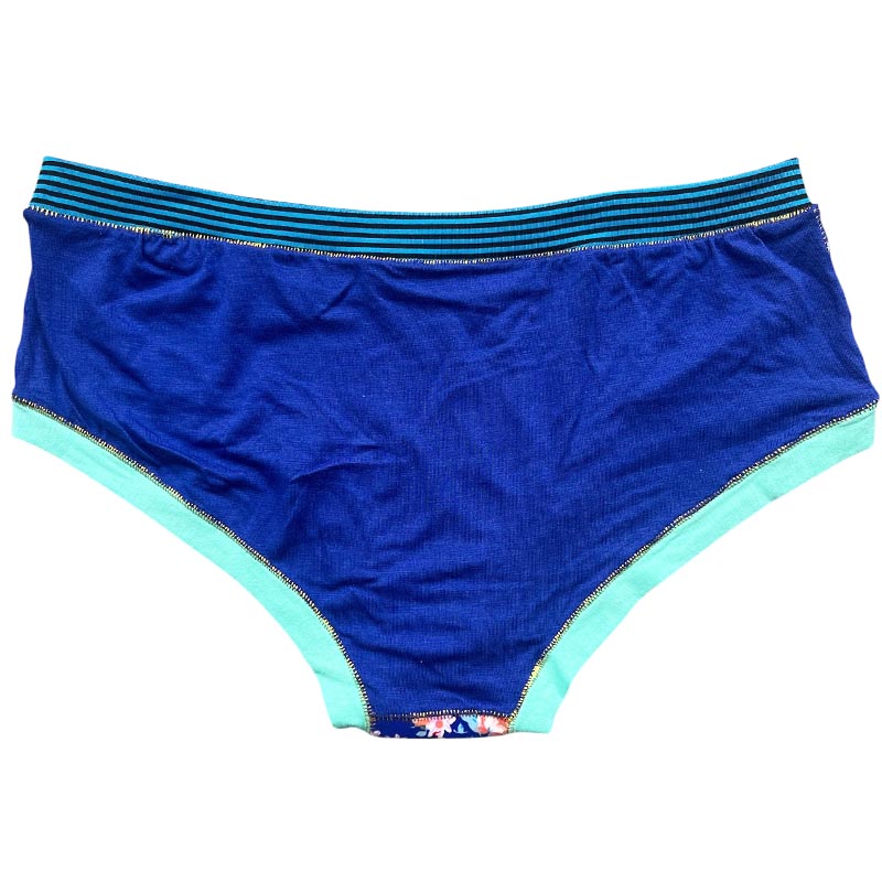 Cette culotte aux assemblages de matières et couleurs (40% coton, 30% élasthane et 30% viscose) ne présente pas d’élastique, aussi bien au niveau de la taille qu’au niveau des cuisses. Agréable au toucher et confortable à porter.