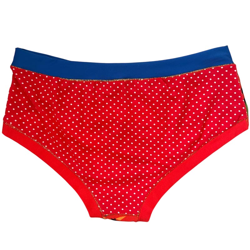 Cette culotte aux assemblages de matières et couleurs (40% coton, 30% élasthane et 30% viscose) ne présente pas d’élastique, aussi bien au niveau de la taille qu’au niveau des cuisses. Agréable au toucher et confortable à porter.