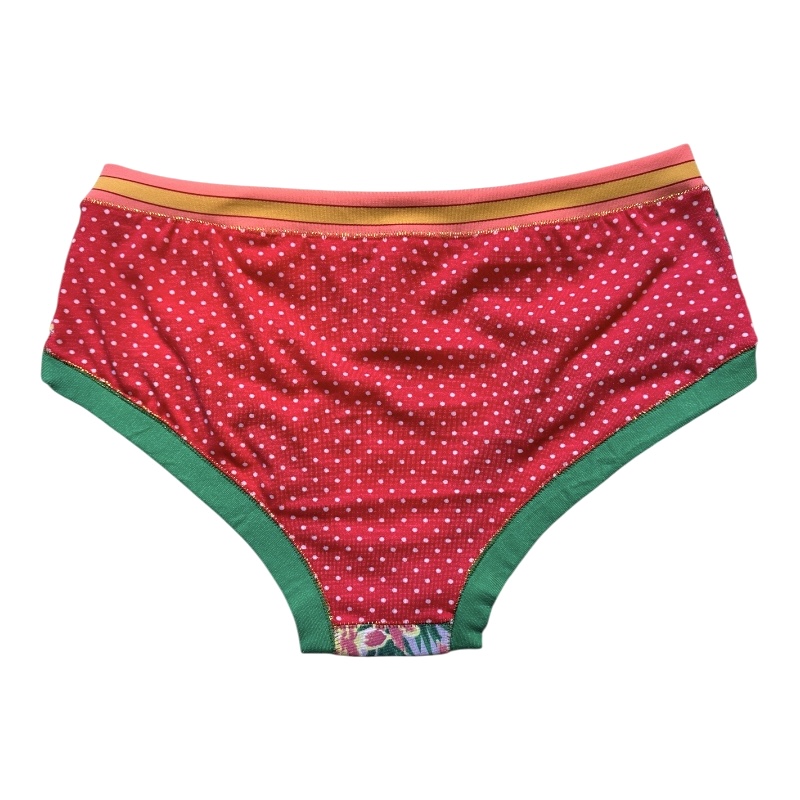 Cette culotte aux assemblages de matières et couleurs (40% coton, 30% élasthane et 30% viscose) ne présente pas d’élastique, aussi bien au niveau de la taille qu’au niveau des cuisses. Agréable au toucher et confortable à porter.